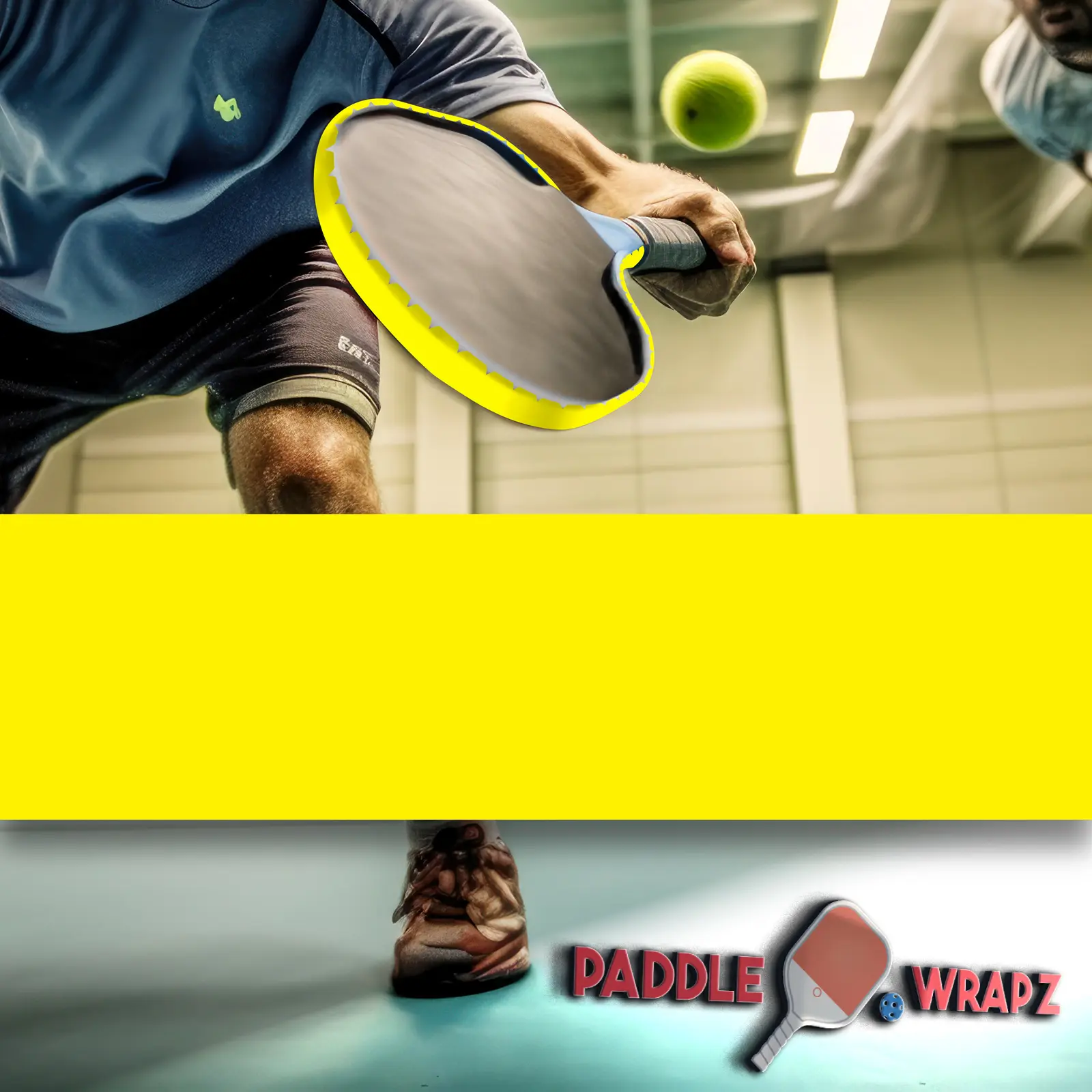 Our Solid Yellow Paddle Wrapz are custom Pickleball Paddle Tape edge protectors that can be applied in seconds.